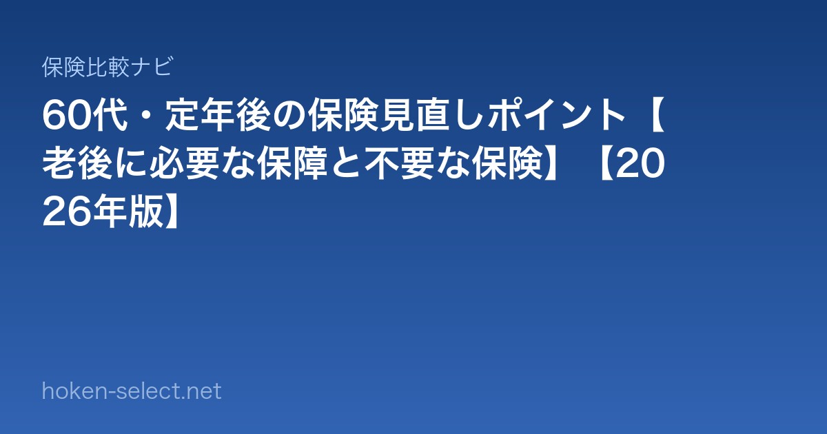 - 医療保険:疾病リスクが高まる60代に必須。先進医療特約も重要