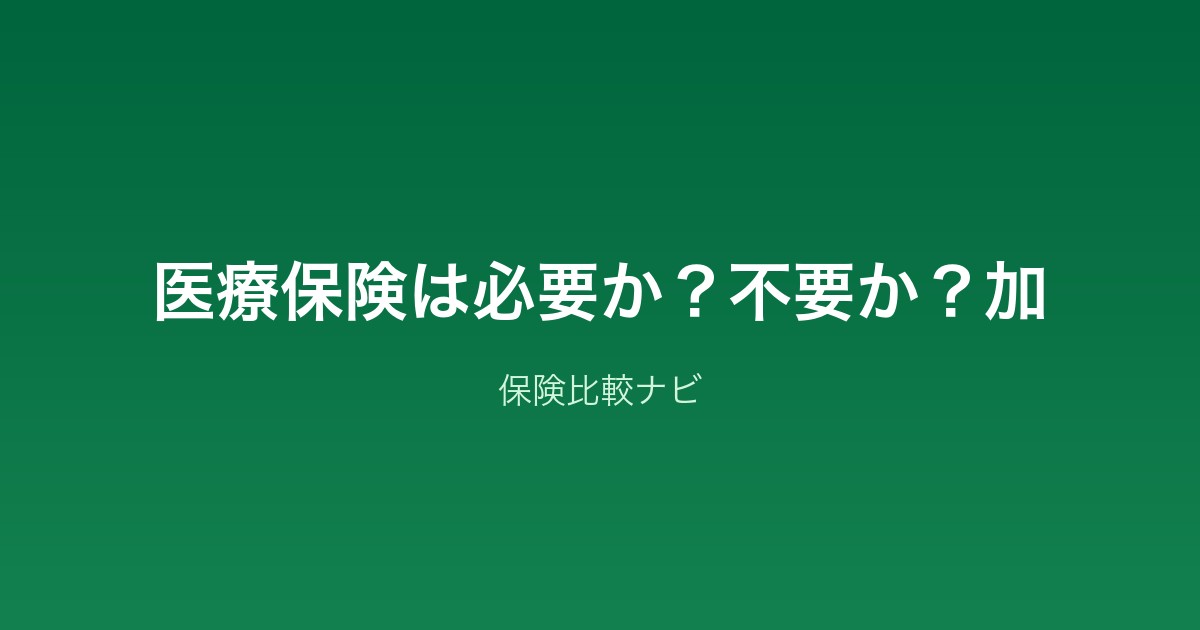 医療保険は必要か?不要か?加入すべき人・しなくていい人を解説【2026年版】